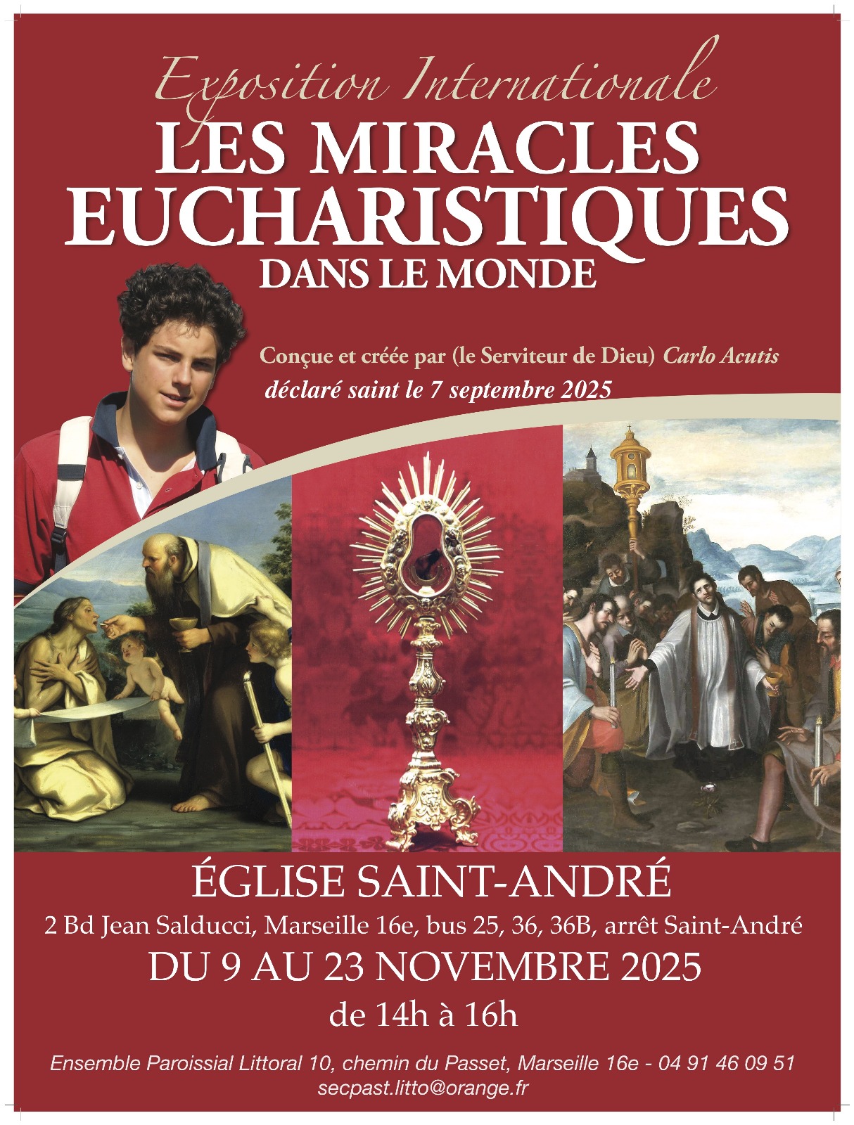 182797 09nov(nov 9)14h0023(nov 23)16h00Exposition sur les miracles Eucharistiques dans le monde Détails de l'événement Détails de l'événement Horaire9 novembre 2025 14h00 - 23 novembre 2025 16h00 Ajouter à mon calendrier