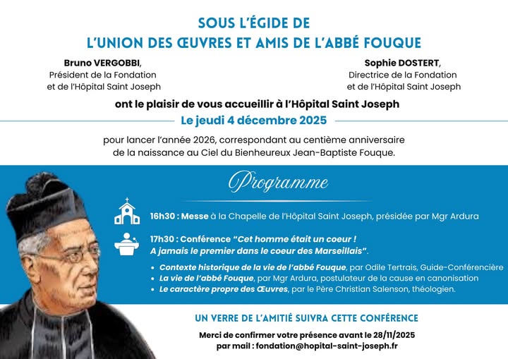 16H30, Messe à la chapelle de l’hôpital Saint Joseph, présidé par Mgr Ardura.