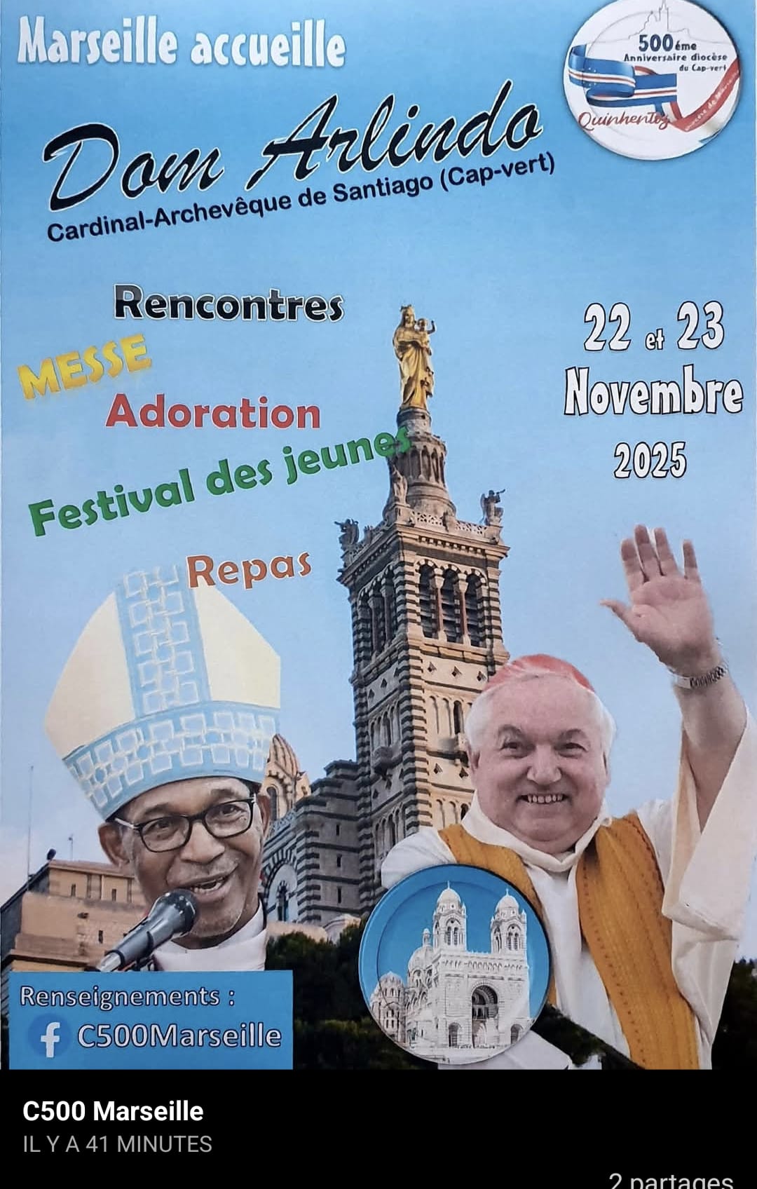 181105 22nov(nov 22)8h0023(nov 23)20h00Marseille accueille le cardinal archevêque de Santiago (Cap-vert) Détails de l'événement Détails de l'événement Horaire22 novembre 2025 8h00 - 23 novembre 2025 20h00 Ajouter à mon calendrier