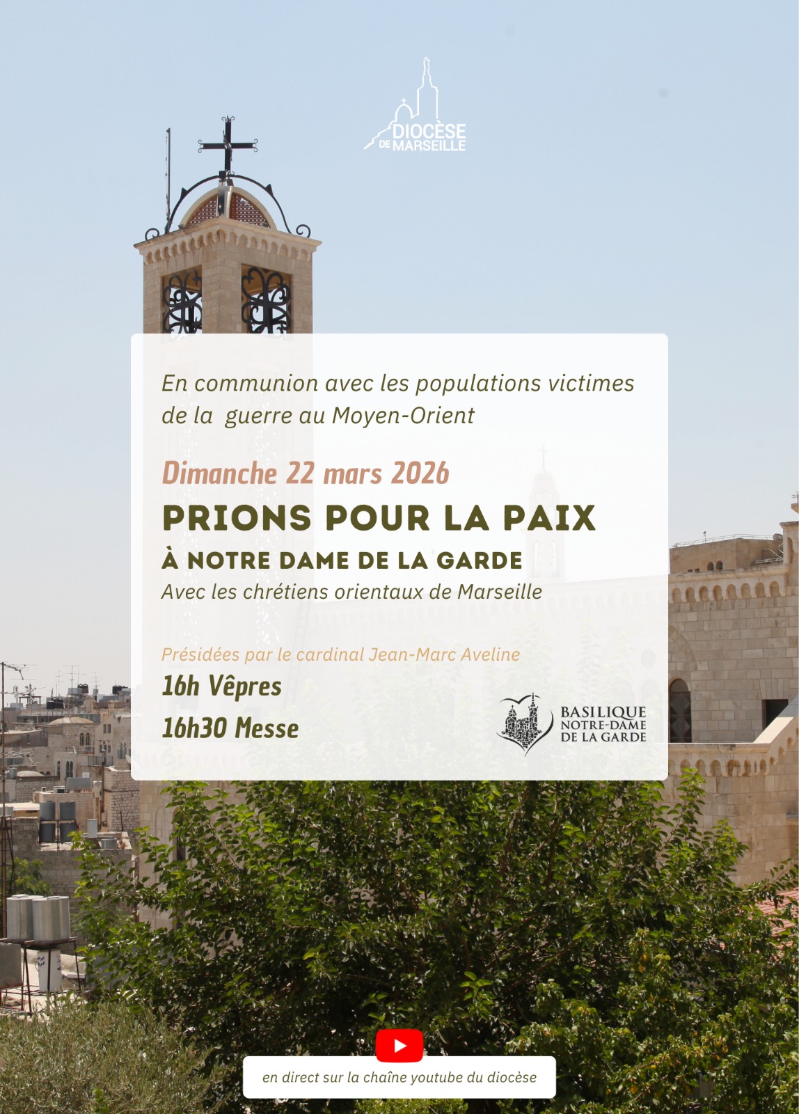 190789 22mar16h0017h30Prions pour la paix en communion avec les chrétiens orientaux de Marseille Détails de l'événement Détails de l'événement Horaire22 mars 2026 16h00 - 17h30 Ajouter à mon calendrier