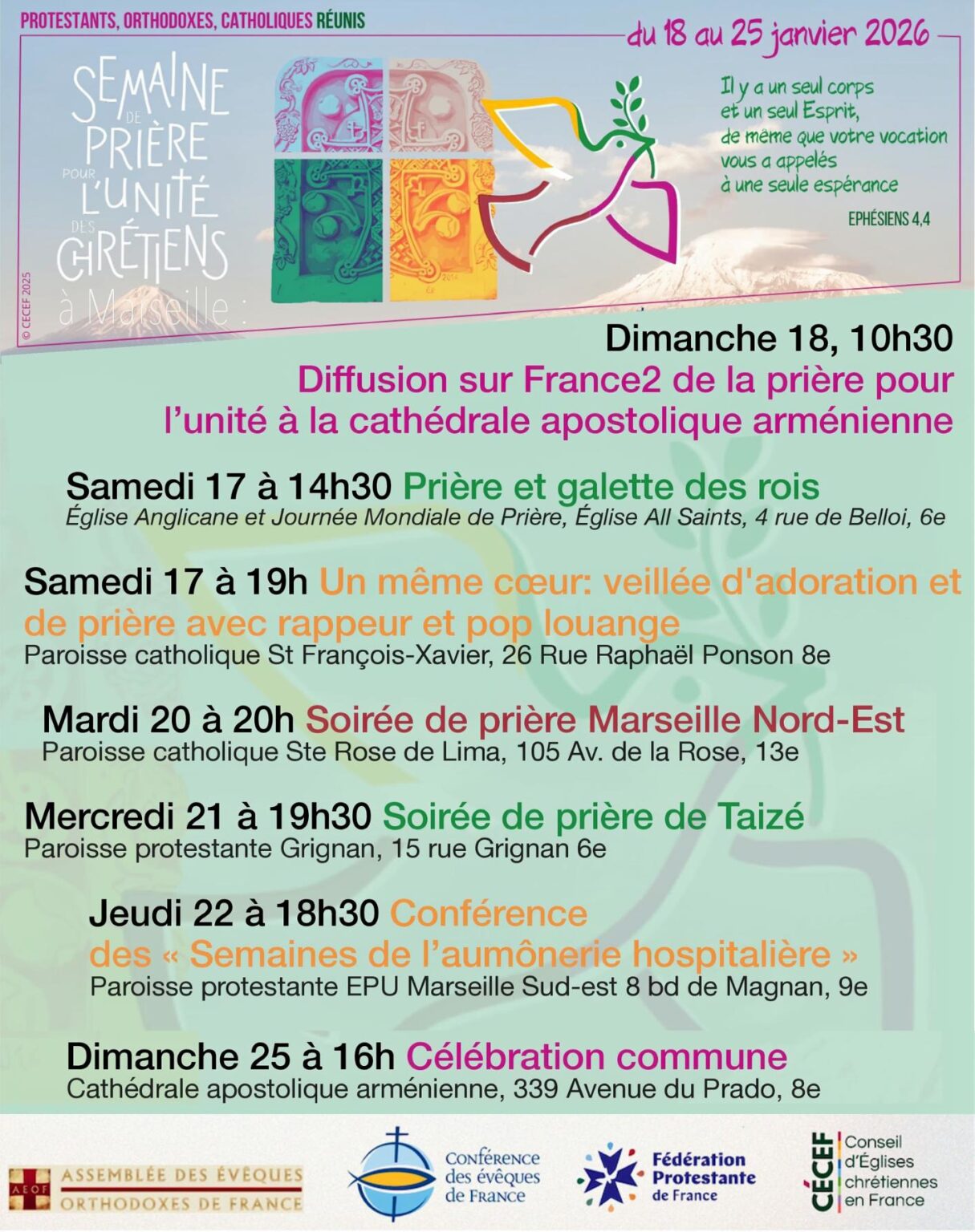 186288 17jan14h3016h30Programme de la Semaine de prière pour l'unité des chrétiens 2026 Détails de l'événement Détails de l'événement Horaire17 janvier 2026 14h30 - 16h30 Ajouter à mon calendrier