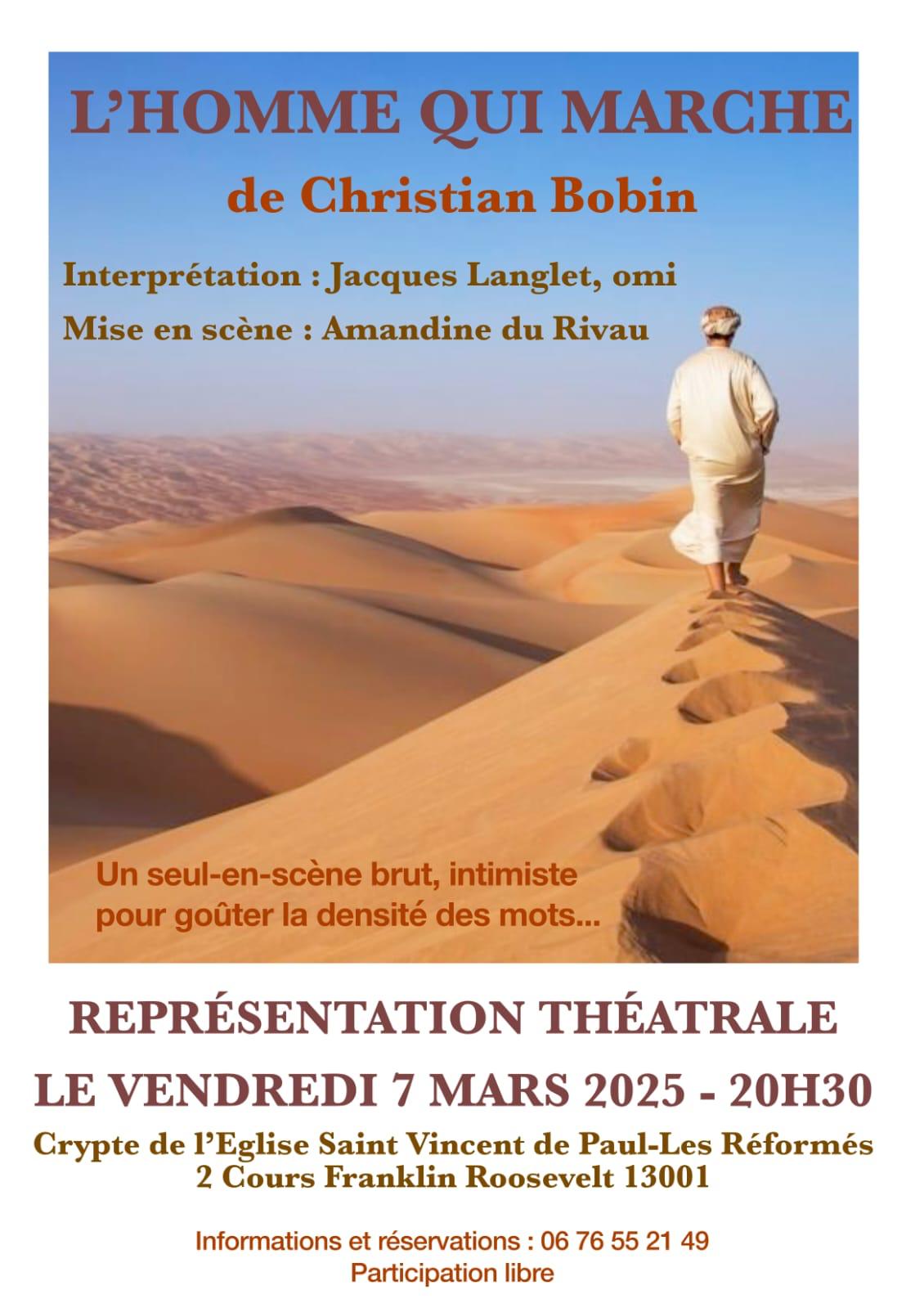 168571 07mar20h3022h00Représentation théâtrale "l'homme qui marche" de Christian Bobin Détails de l'événement Détails de l'événement Horaire7 mars 2025 20h30 - 22h00 Ajouter à mon calendrier