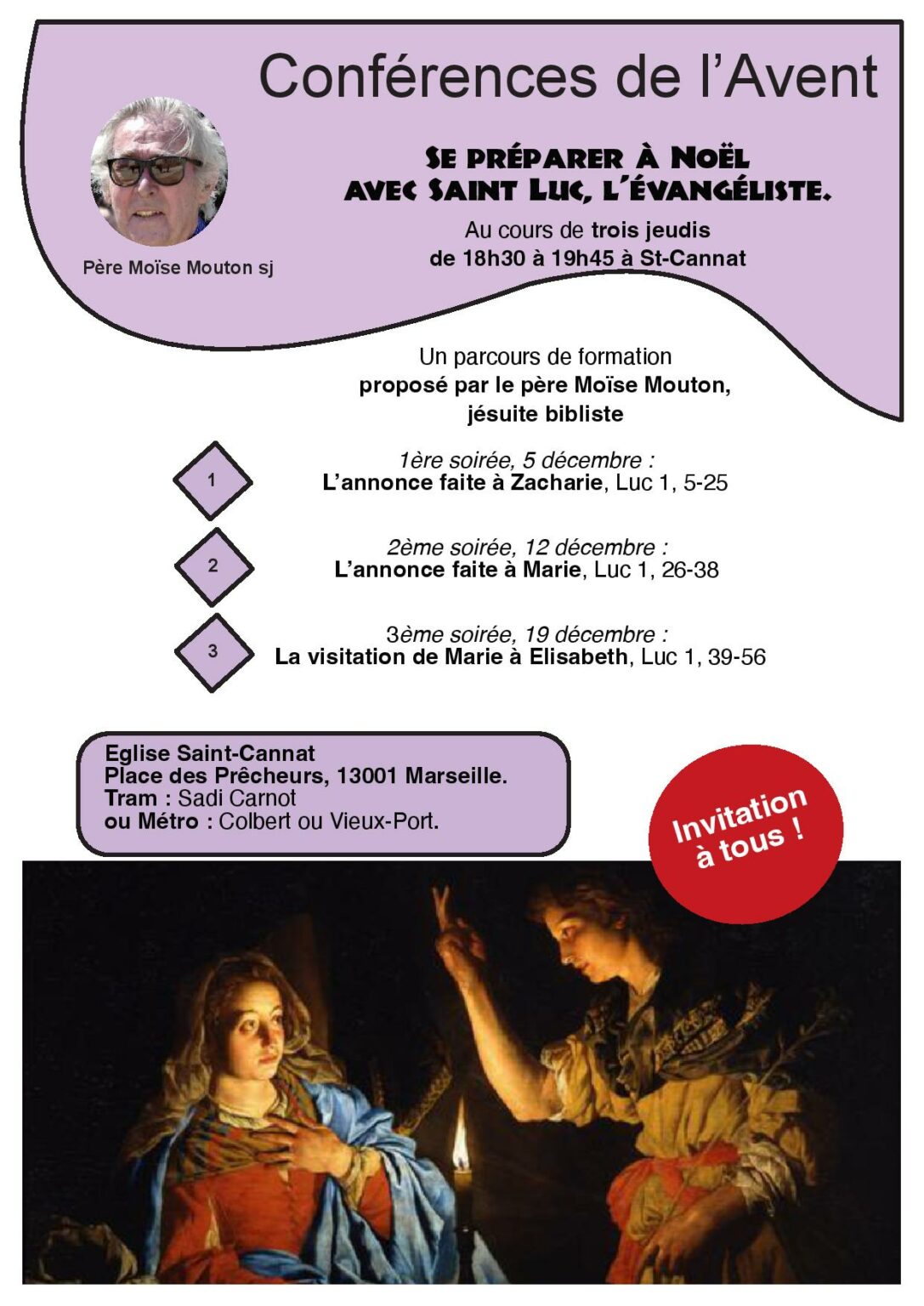 166056 05déc18h3019h45Se préparer à Noël avec saint Luc, l'évangéliste Détails de l'événement Détails de l'événement Horaire5 décembre 2024 18h30 - 19h45 LieuÉglise Saint-CannatPlace des prêcheurs 13001 MarseilleOther Events Ajouter à mon calendrier