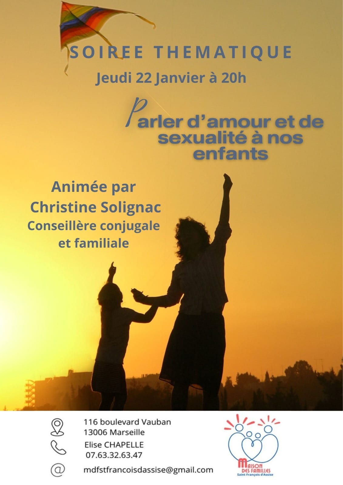 186298 22jan20h0022h00Soirée thématique: Parler d'amour et de sexualité à nos enfants Détails de l'événement Détails de l'événement Horaire22 janvier 2026 20h00 - 22h00 Ajouter à mon calendrier