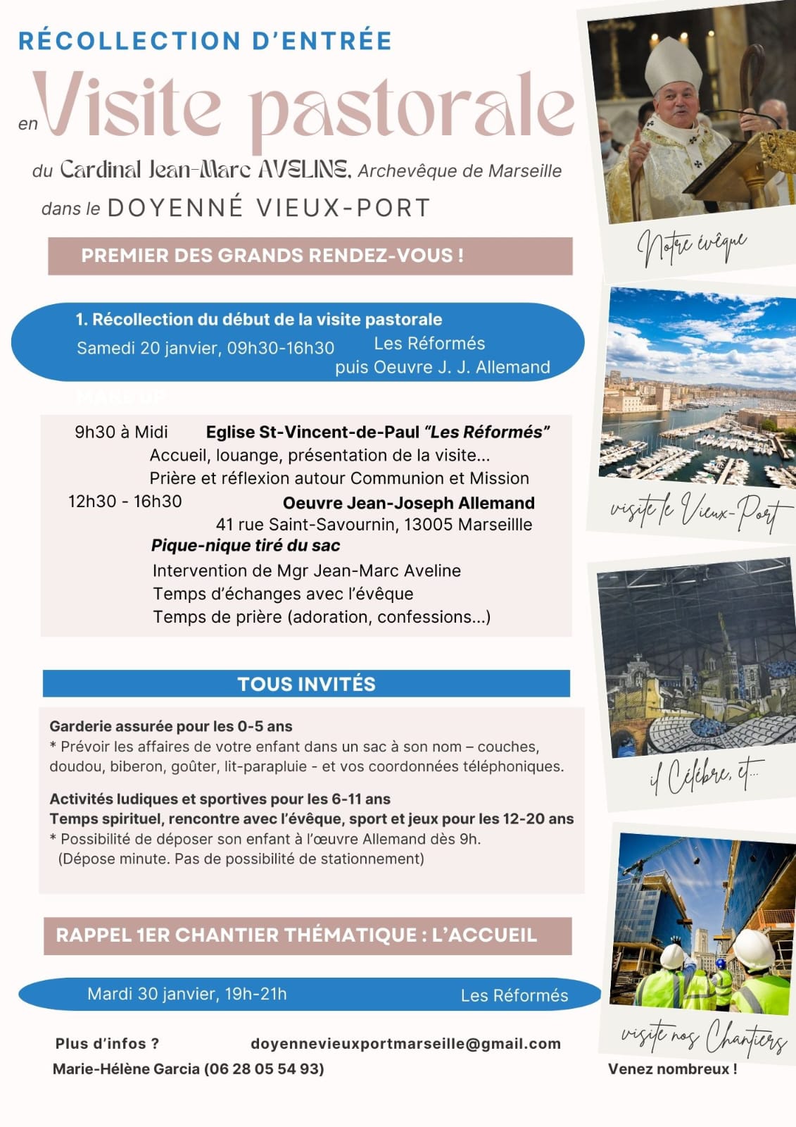 149019 20jan9h3016h30Visite pastorale - Doyenné Vieux-Port Détails de l'événement Détails de l'événement Horaire20 janvier 2024 9h30 - 16h30 Ajouter à mon calendrier