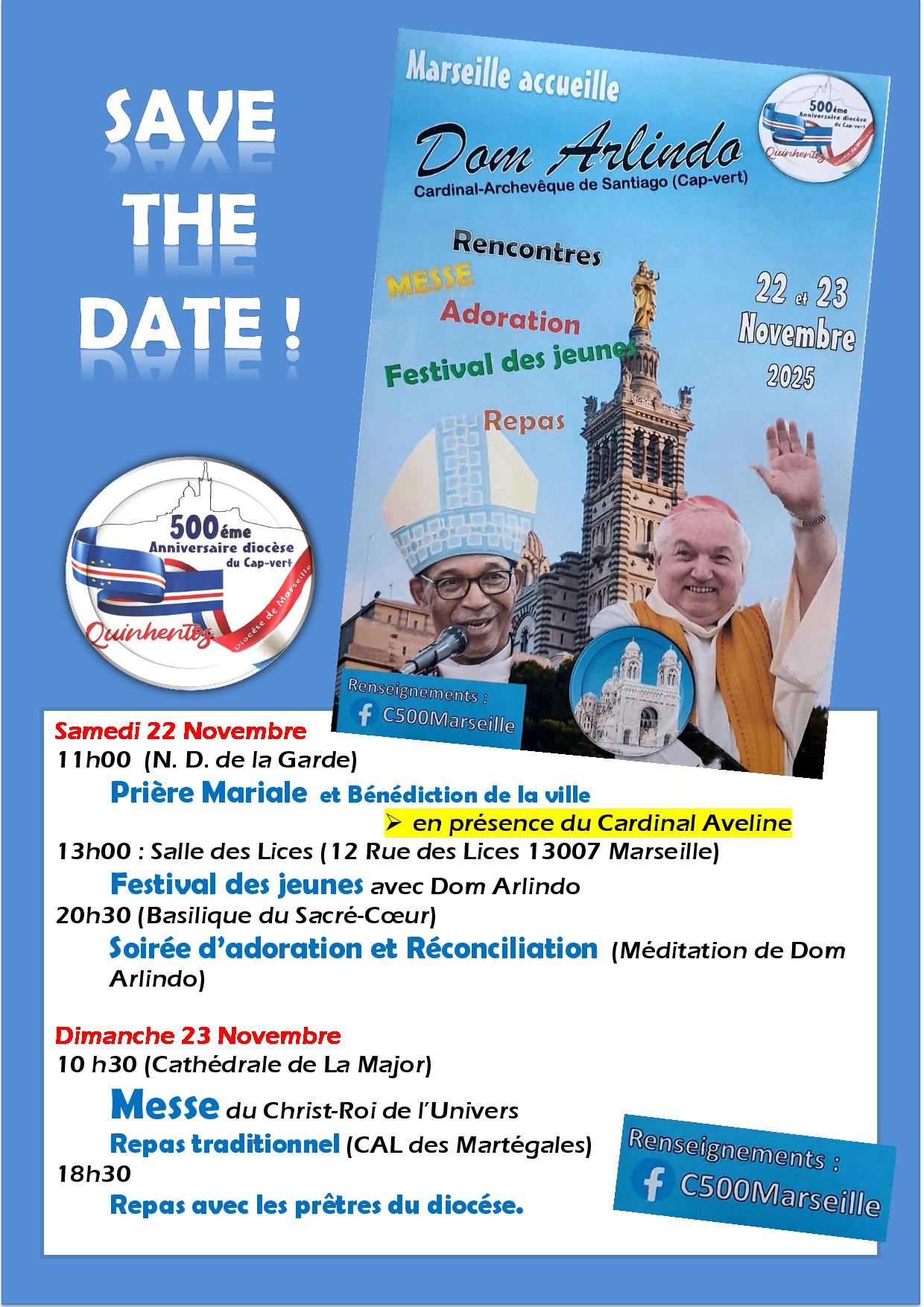 Du 22 au 23 novembre, le diocèse aura la joie d’accueillir Mgr Arlindo Gomes Furtado, cardinal capverdien et évêque du diocèse de Santiago du Cap-Vert, dans le cadre de la préparation du grand Jubilé des 500 ans de son diocèse, qui aura lieu en 2033. Un évènement très attendu par la diaspora capverdienne de Marseille.
