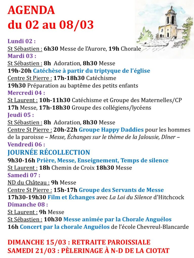 Après la messe de 10h30 à Allauch, pique-nique, jeux, répétition des mouvements, temps d’échanges avec le curé, prière, goûter. Fin vers 16h30-17h au Centre Saint Pierre.
